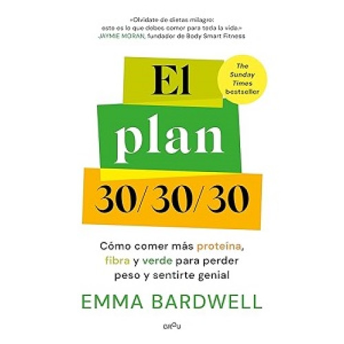 Ahorros Precio de preventa garantizado. Términos 30 g de proteína por comida. 30 g de fibra al día. 30 verduras a la semana. LA GUÍA MÁS SENCILLA Y EFICAZ PARA PERDER PESO Y GANAR SALUD. Para la mayoría de nosotros, sentirnos bien en nuestro cuerpo puede ser una odisea: un ir y venir de dietas que no podemos (ni queremos) mantener a largo plazo. Hasta ahora. La nutricionista Emma Bardwell presenta una poderosa fórmula para garantizar el equilibrio de proteína, fibra y verdura que tu cuerpo necesita. El plan 30/30/30 te ayudará a regular tu peso, sentir saciedad, ganar músculo y energía y transformar completamente tu salud de manera sencilla. ¿Cómo puedes ponerlo en práctica? Gracias a más de 80 recetas nutritivas y deliciosas, planificadores de comidas mensuales y semanales y un sinfín de consejos y trucos de cocina que cambiarán tu alimentación para siempre. "¿Te confunden tantos mensajes sobre nutrición y al final no sabes qué comer? ¿La oferta interminable de dietas -que siempre prometen perder peso rápido- te lleva a ir saltando de moda en moda sin obtener apenas resultados? ¿Te preocupa tu salud a largo plazo y el riesgo de padecer enfermedades crónicas como la diabetes tipo 2? Este es justo el motivo por el que ideé el plan 30/30/30: para que tú, como todos mis clientes, sepas por fin qué comer para perder peso y sentirte genial". ¿QUÉ CAMBIOS TE ESPERAN CON EL PLAN 30/30/30? * Un mejor estado de ánimo desde el primer día * Digestiones más ágiles * Mejoras en los marcadores metabólicos * Reducción del colesterol * Un mayor cuidado de la microbiota intestinal * Control del peso a partir del primer mes * Menos riesgo de padecer enfermedades crónicas a largo plazo * Más fuerza y energía gracias a la proteína y la fibra